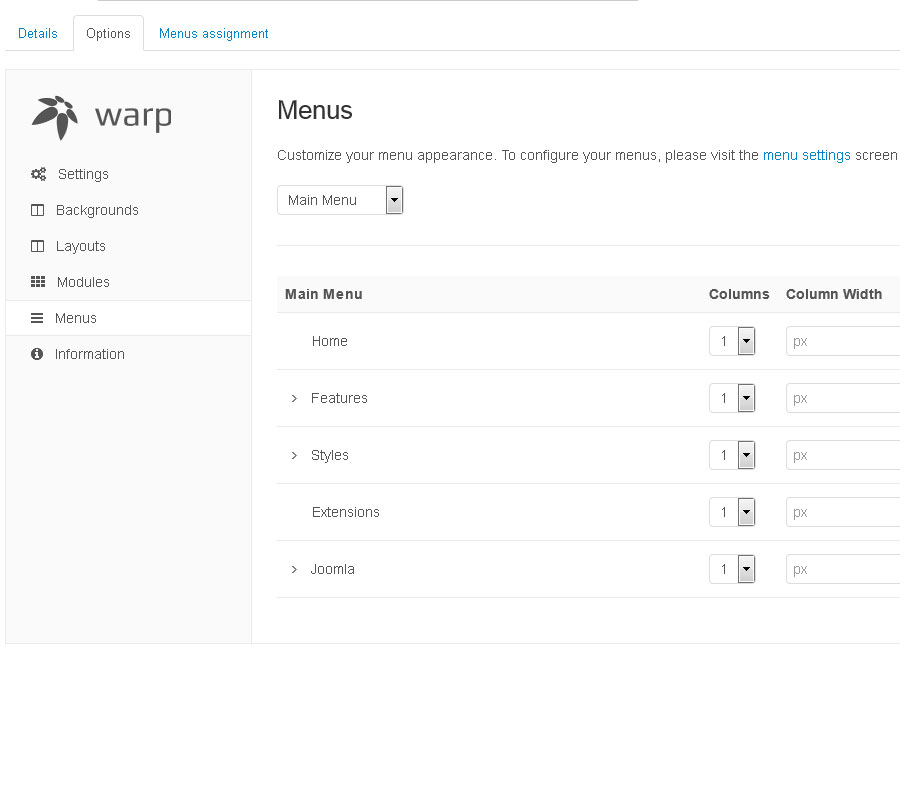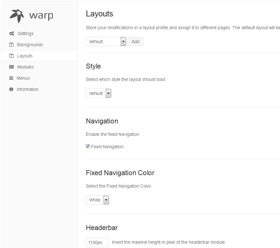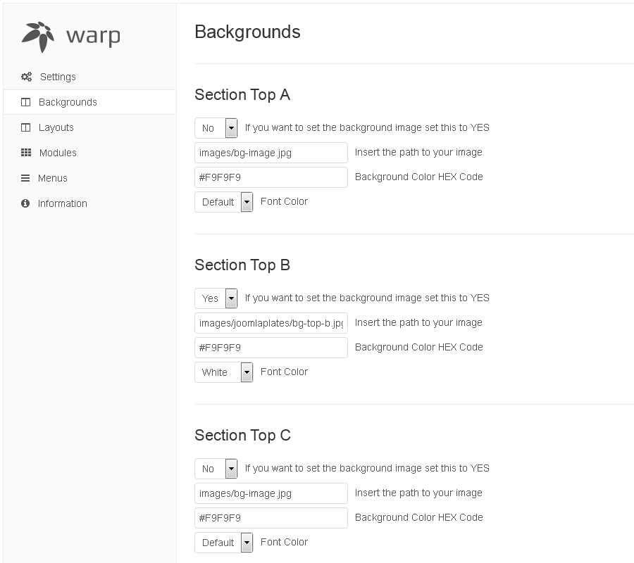 This theme comes with a lot of module positions. The blue module positions allow to choose a module layout which defines the module alignment and proportions: